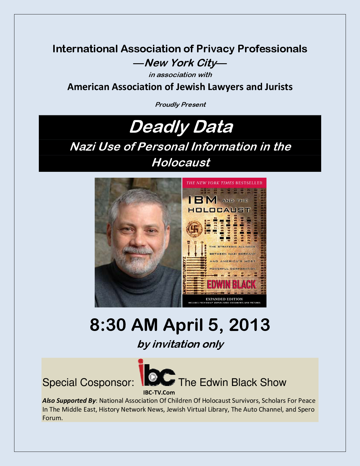 Cosponsored by The Edwin Black Show, IBC-TV.com