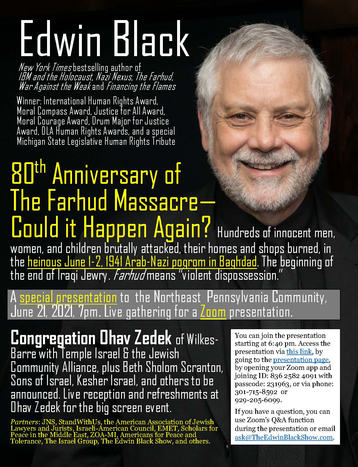 Edwin Black on the Farhud for Congretation Ohav Zedek