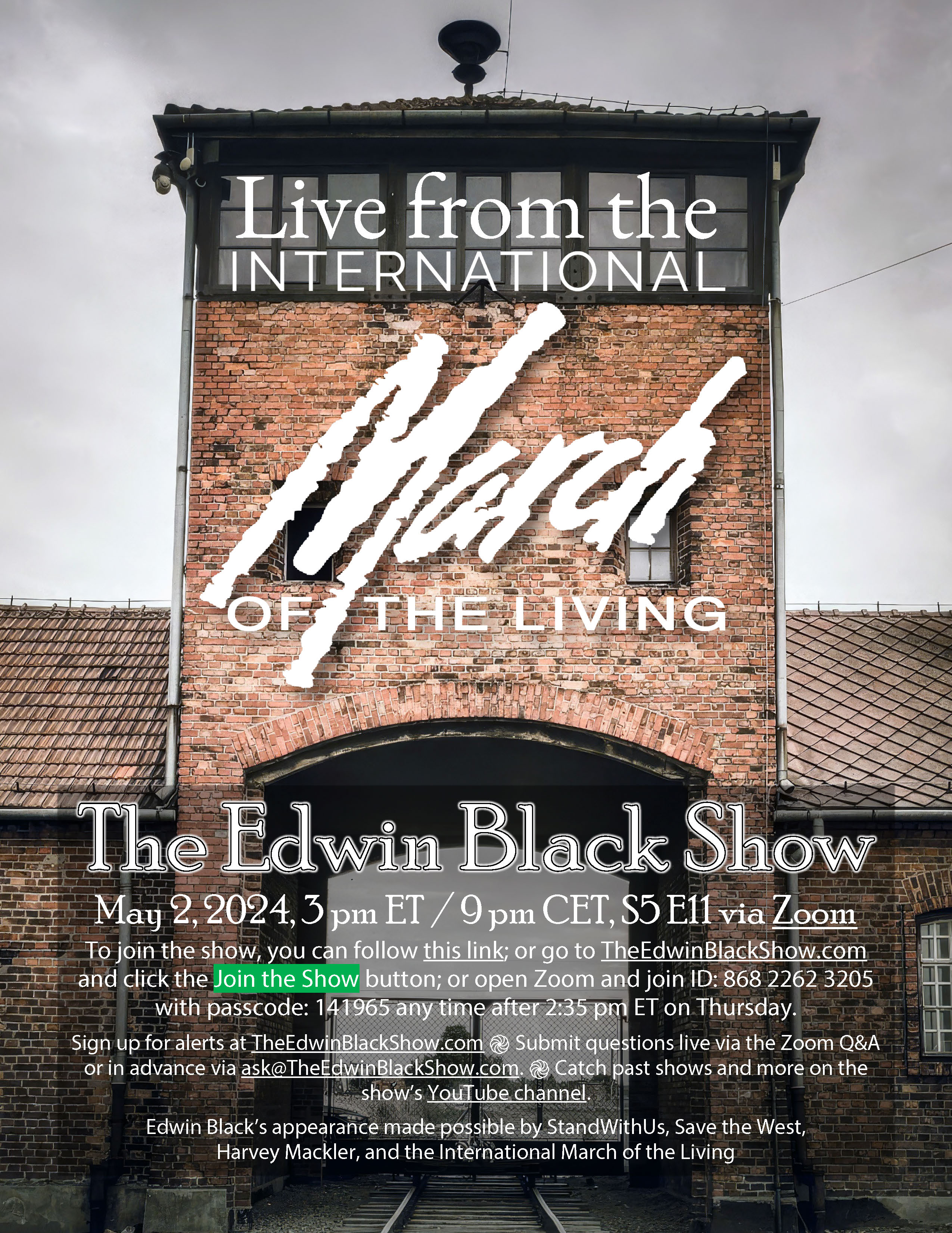 Edwin serves as the scholar-in-residence for the International March of the Living, which gathers thousands every year to Auschwitz to commemorate the Shoah. Join Edwin and his guests, live from March of the Living in Auschwitz, Kraków, Warszawa, and Łódź, as they remember the Holocaust we know—and ponder the next.