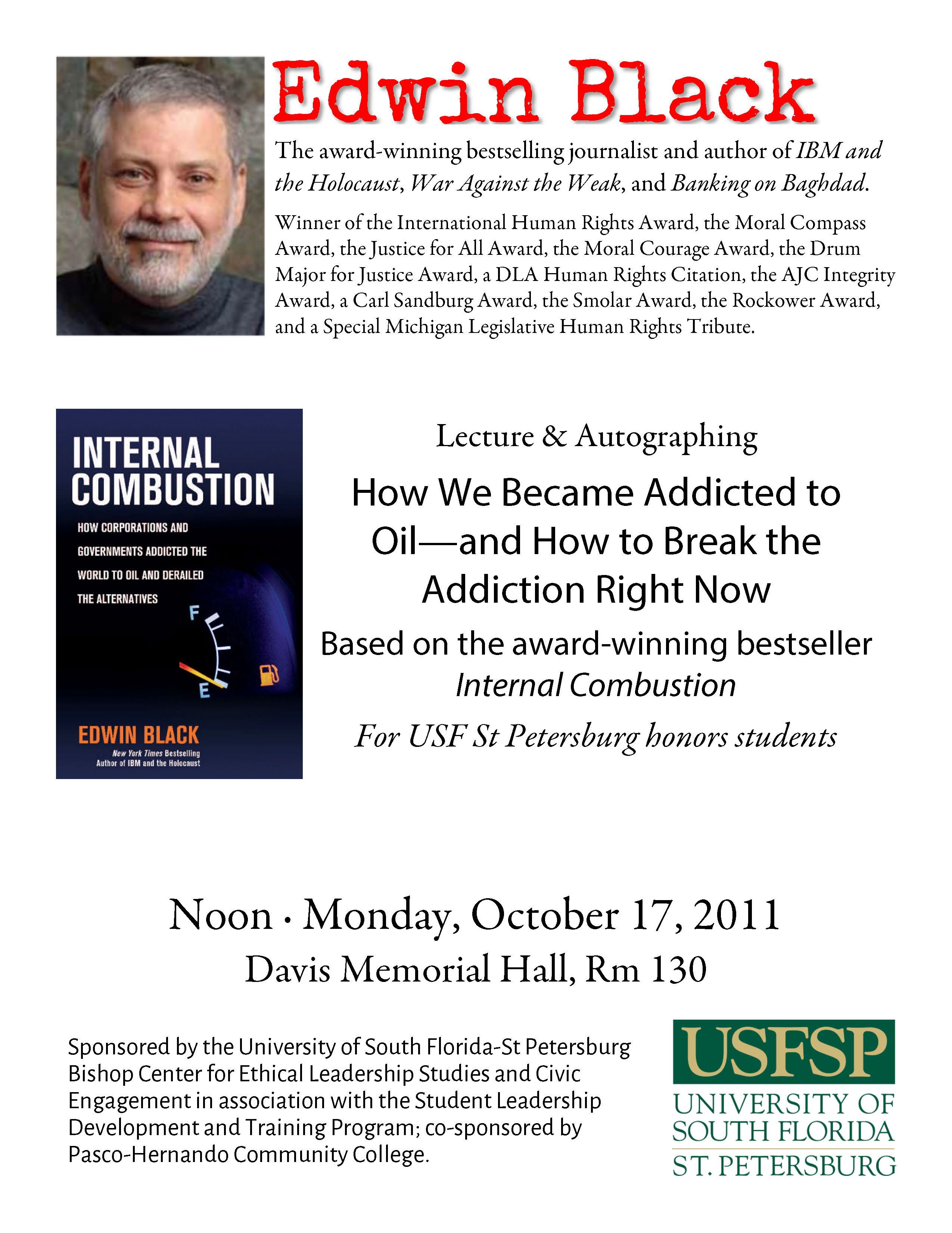 Sponsored by the University of South Florida-St Petersburg Bishop Center for Ethical Leadership Studies and Civic Engagement in association with the Student Leadership Development and Training Program; co-sponsored by Pasco-Hernando Community College.