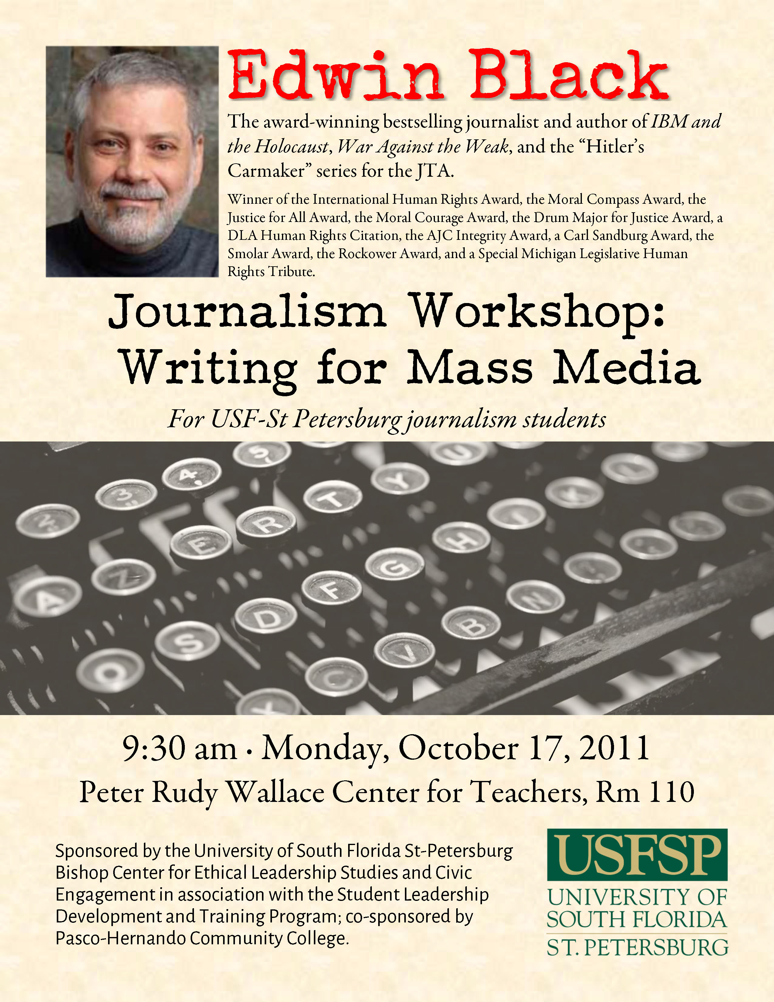 Sponsored by the University of South Florida-St Petersburg Bishop Center for Ethical Leadership Studies and Civic Engagement in association with the Student Leadership Development and Training Program; co-sponsored by Pasco-Hernando Community College.